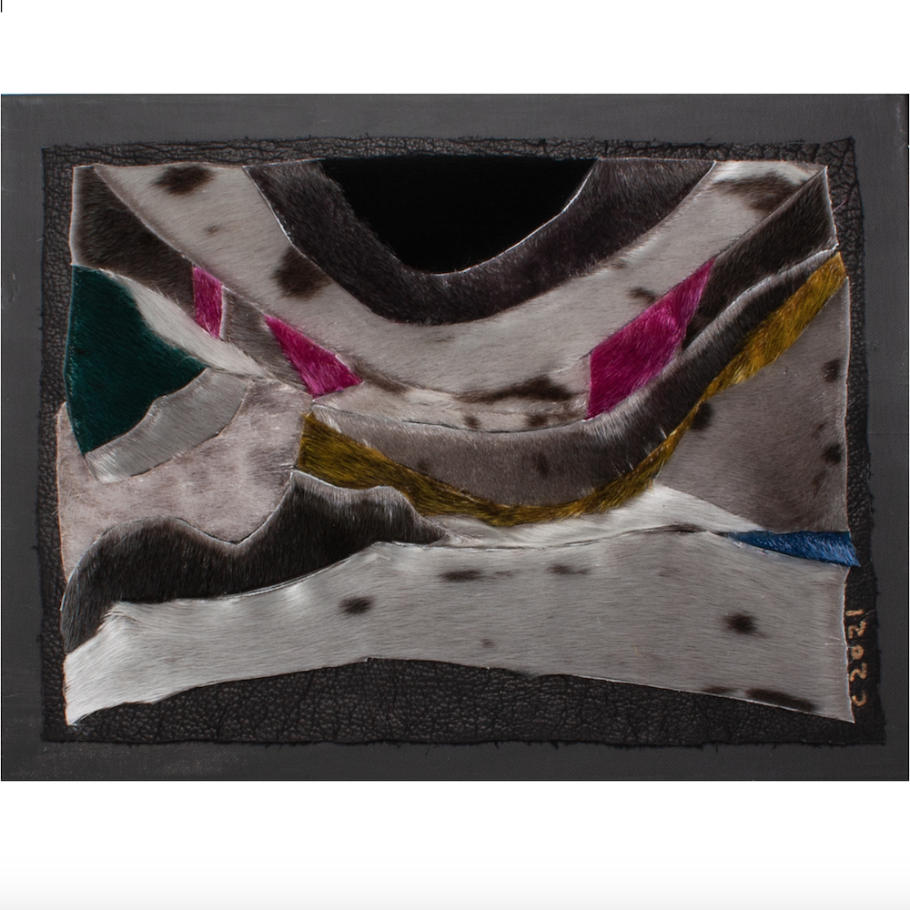 Natural & Dyed Sealskin on Bison Leather on Canvas/Wood Frame