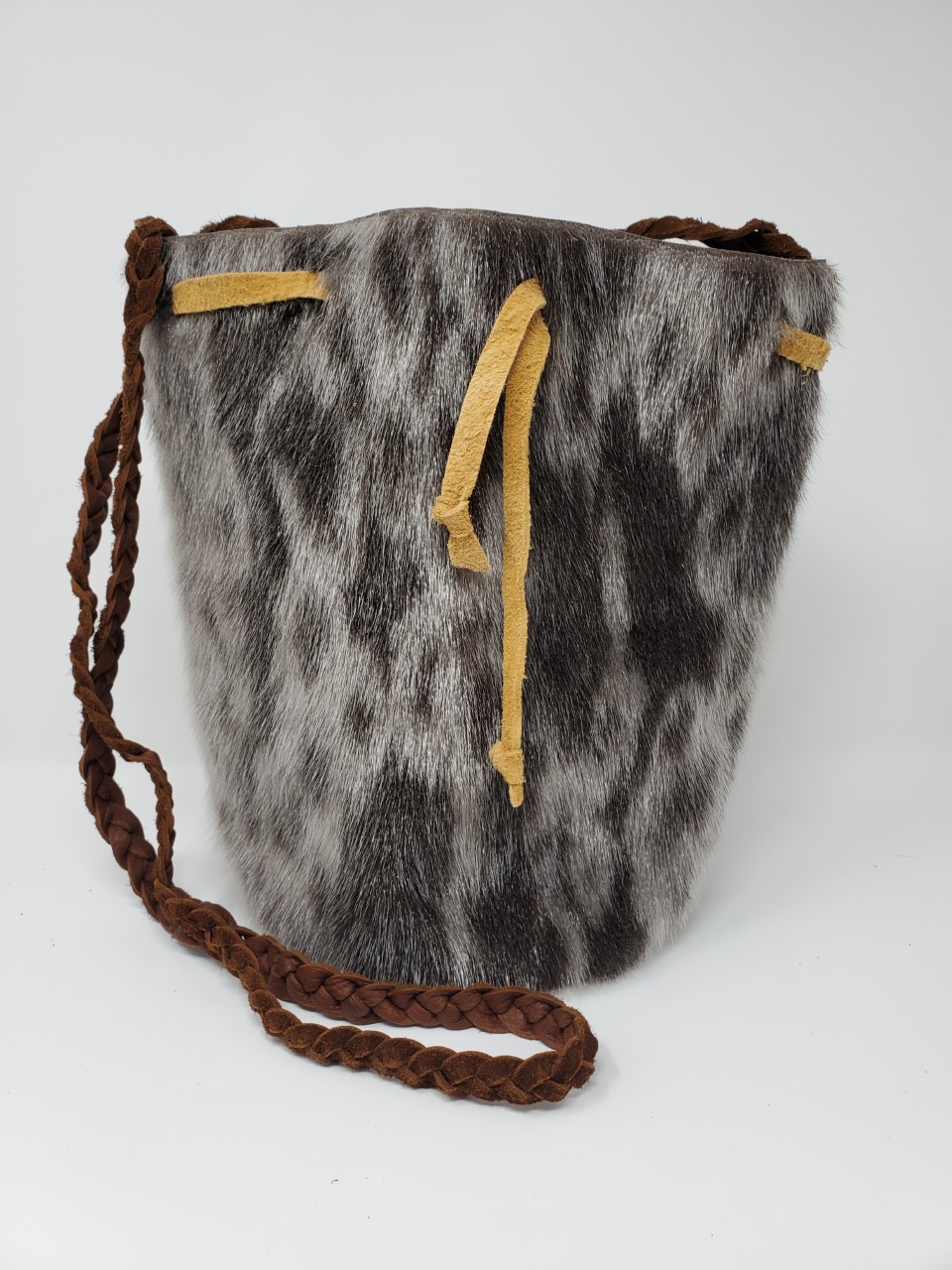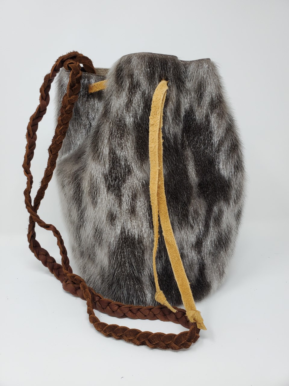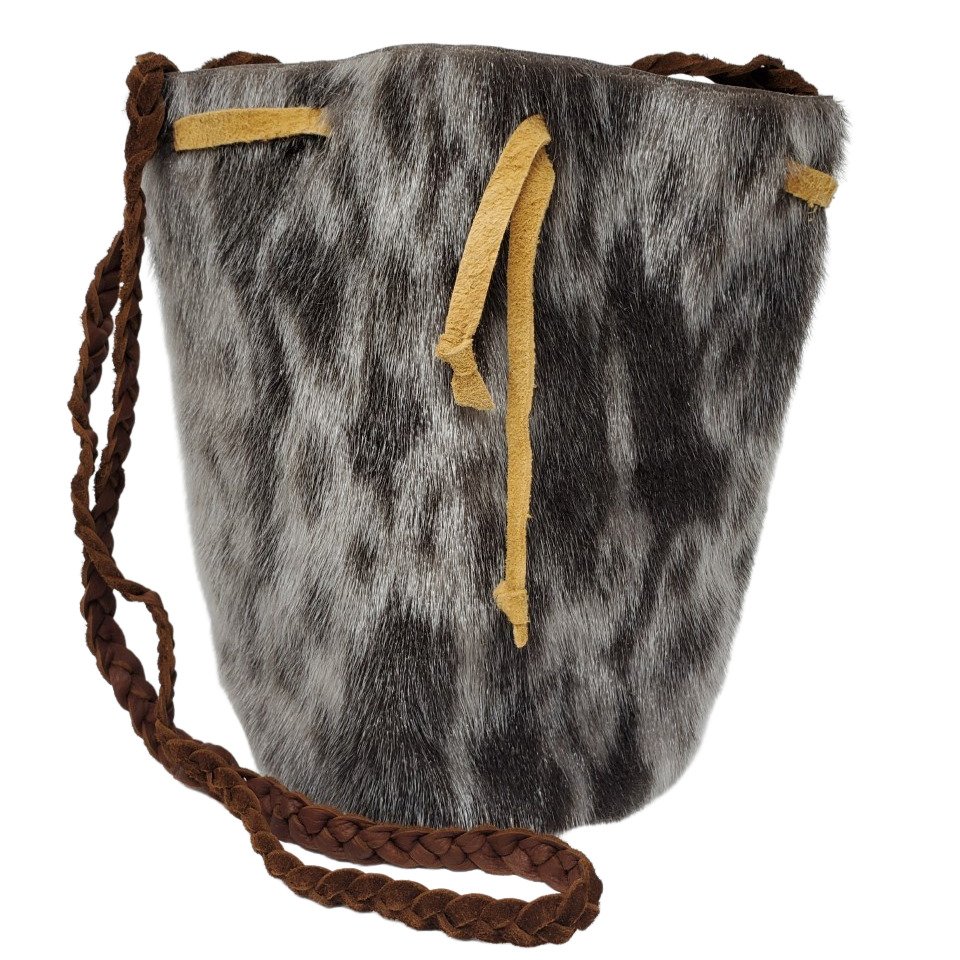 You will absolutely love this ring seal skin pouch purse! It’s beautifully crafted with ring seal skin and bison leather. The tie is made from smoked tanned moosehide. It is perfect for carrying your essentials around town. It is also spacious enough to store a lot of items.