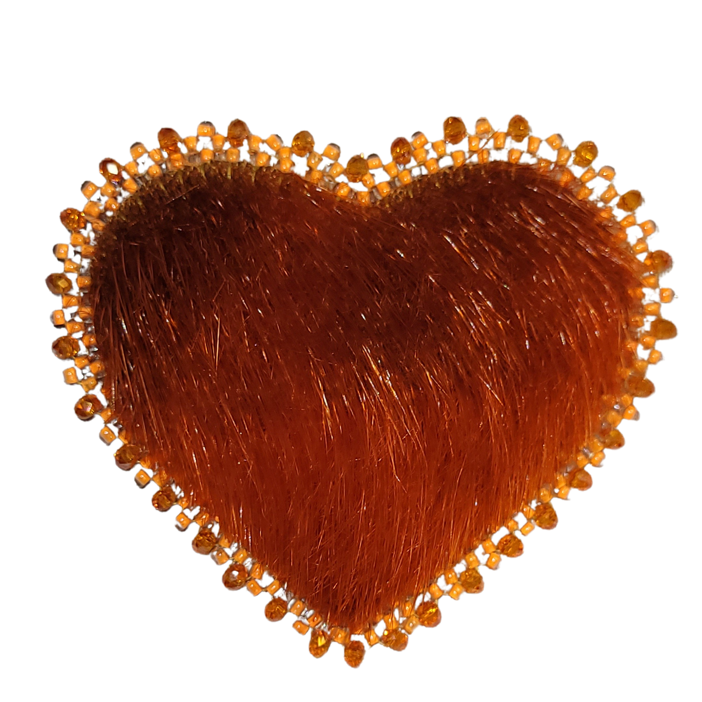 – orange ring seal– glass bead and gemstone edging– orange suede backing