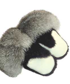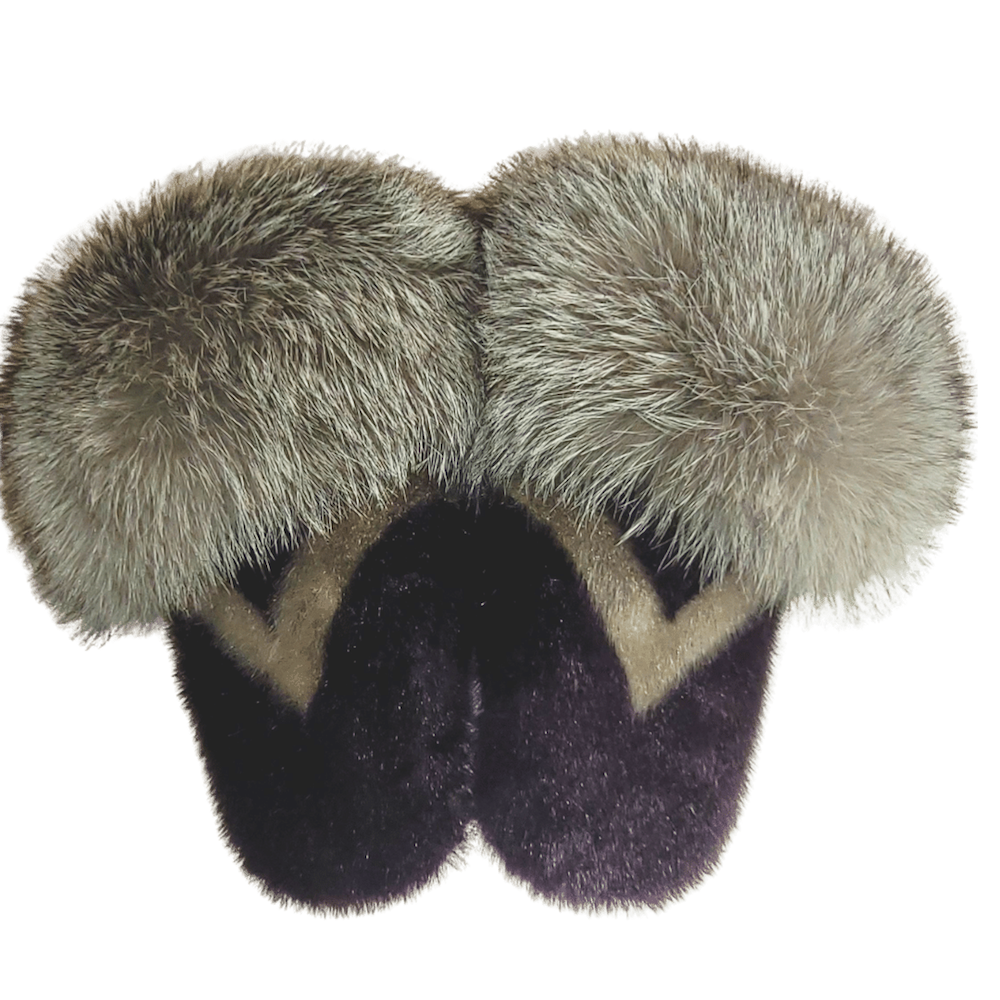 Inspired by kakiniit, traditional Inuit women’s face tattoos, these sealskin mittens feature an inlaid V design in contrasting sealskin color, trimmed in silver fox fur. In the spirit of my ancestors, these mittens are Inuit designed and hand crafted to protect you from the cold Arctic & Canadian winter while making a remarkable fashion statement. An accessible Inuit design that everyone can wear.