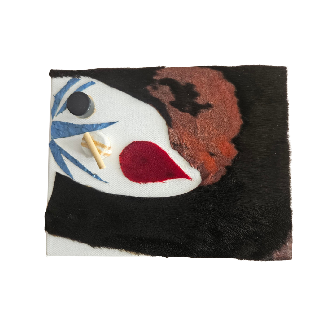 “Sky Song” is a captivating 10 X 8-inch artwork crafted from sealskin, sinew, fish skin, and bamboo. This abstract masterpiece is a profound tribute to Indigenous Dene Drum songs, seen as gifts of love and unity. It intricately illustrates the deep connection between the song, the singer, and the recipient, making it a powerful and unique representation of cultural harmony and affection.