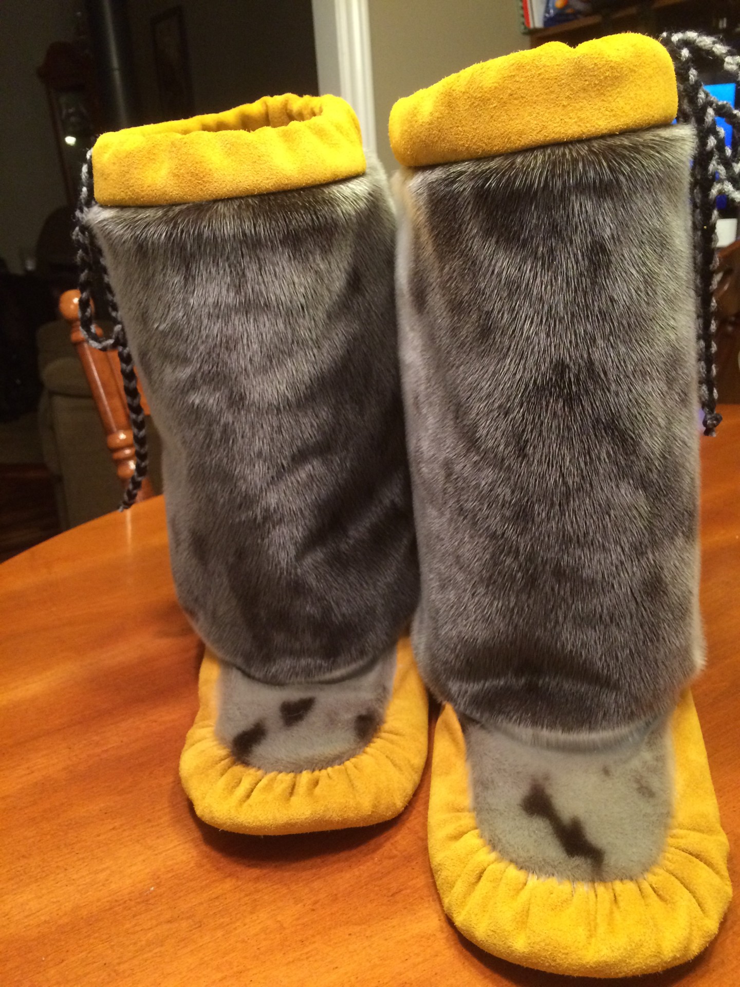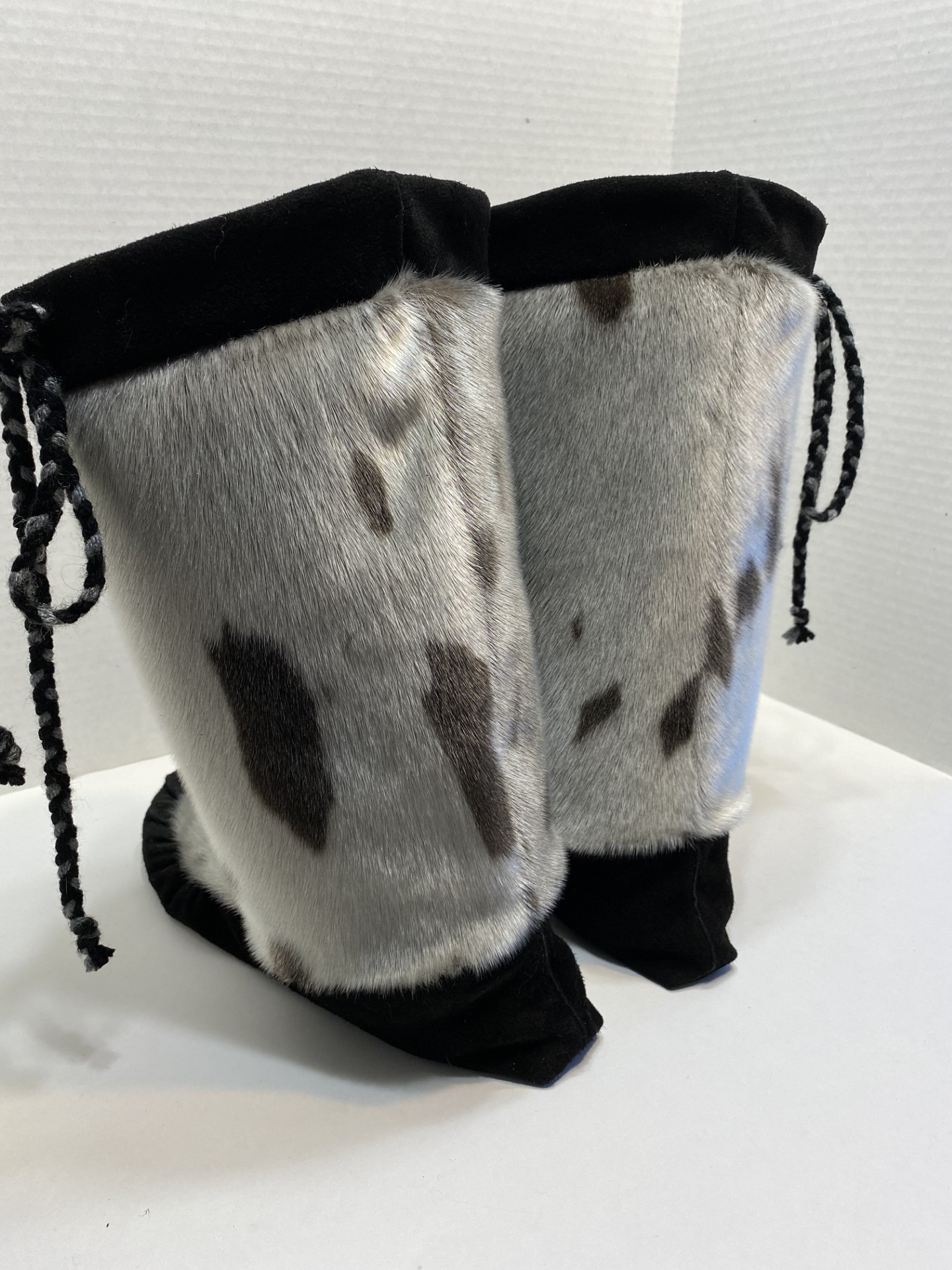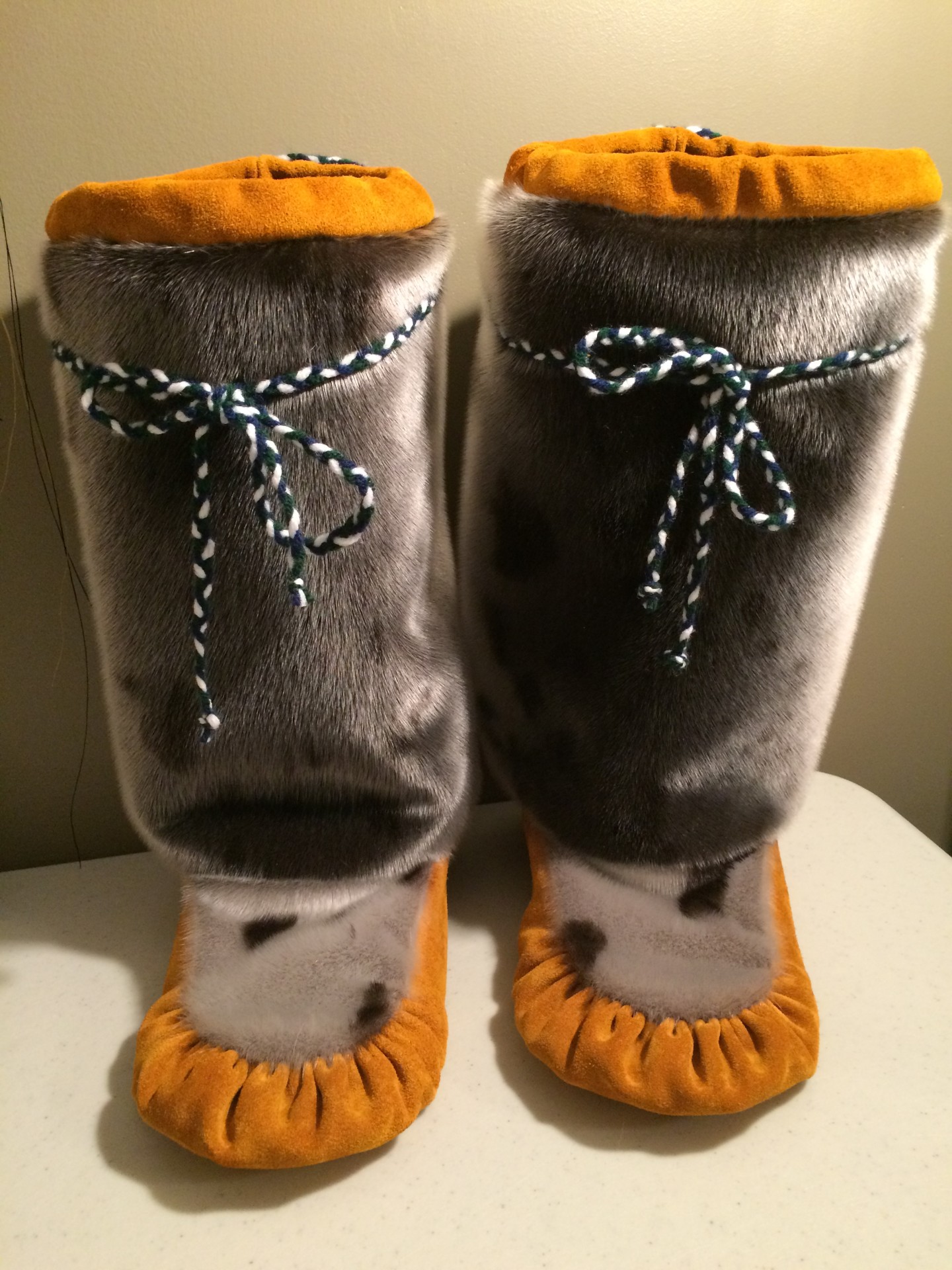 Unisex sealskin mukluks with moosehide, featuring a cozy pile high lining for added warmth, made to order in your choice of custom colors and sizes.