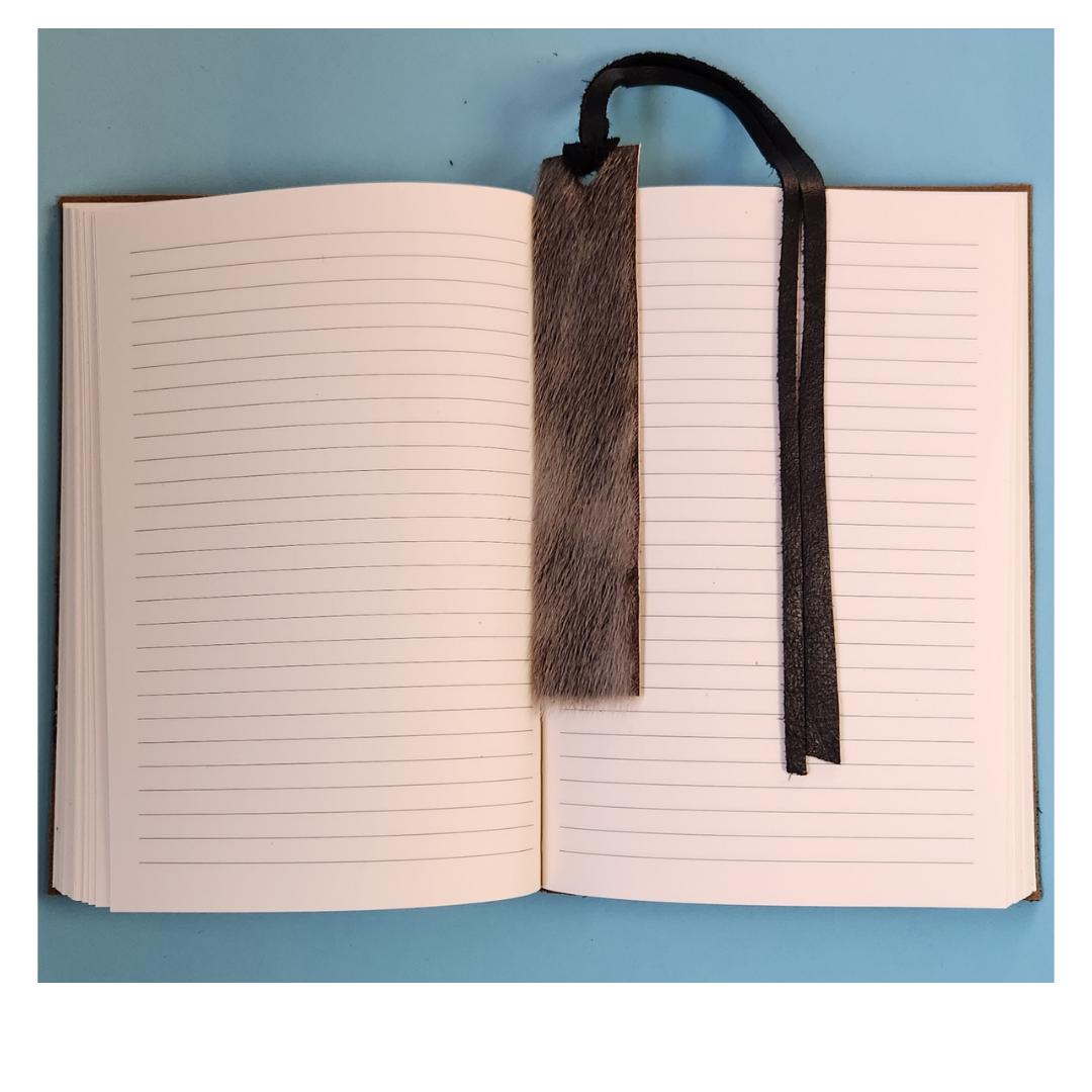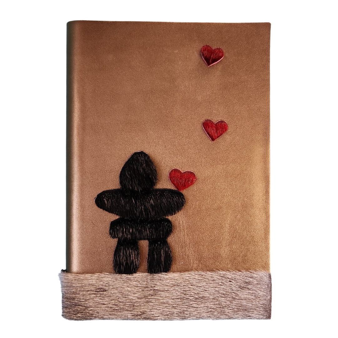 Journal en cuir italien couleur bronze composé de 200 pages lignées pour vous inspirer à poser vos pensées, vos objectifs et vos rêves sur le papier. Orné de décorations inuites en peau de phoque véritable, vendu avec un marque-page assorti en cuir et peau de phoque. Superbe idée cadeau haut de gamme et utile.