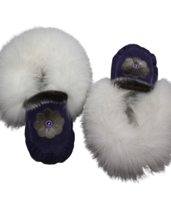 Chaussons faits main avec une décoration unique en peau de phoque en forme de fleur qui ajoute une touche élégante et sophistiquée à votre collection de souliers d’intérieur confortables. Chaque paire de chaussons est fabriquée sur commande, ce qui garantit que vous recevrez un produit parfaitement adapté à vos exigences.