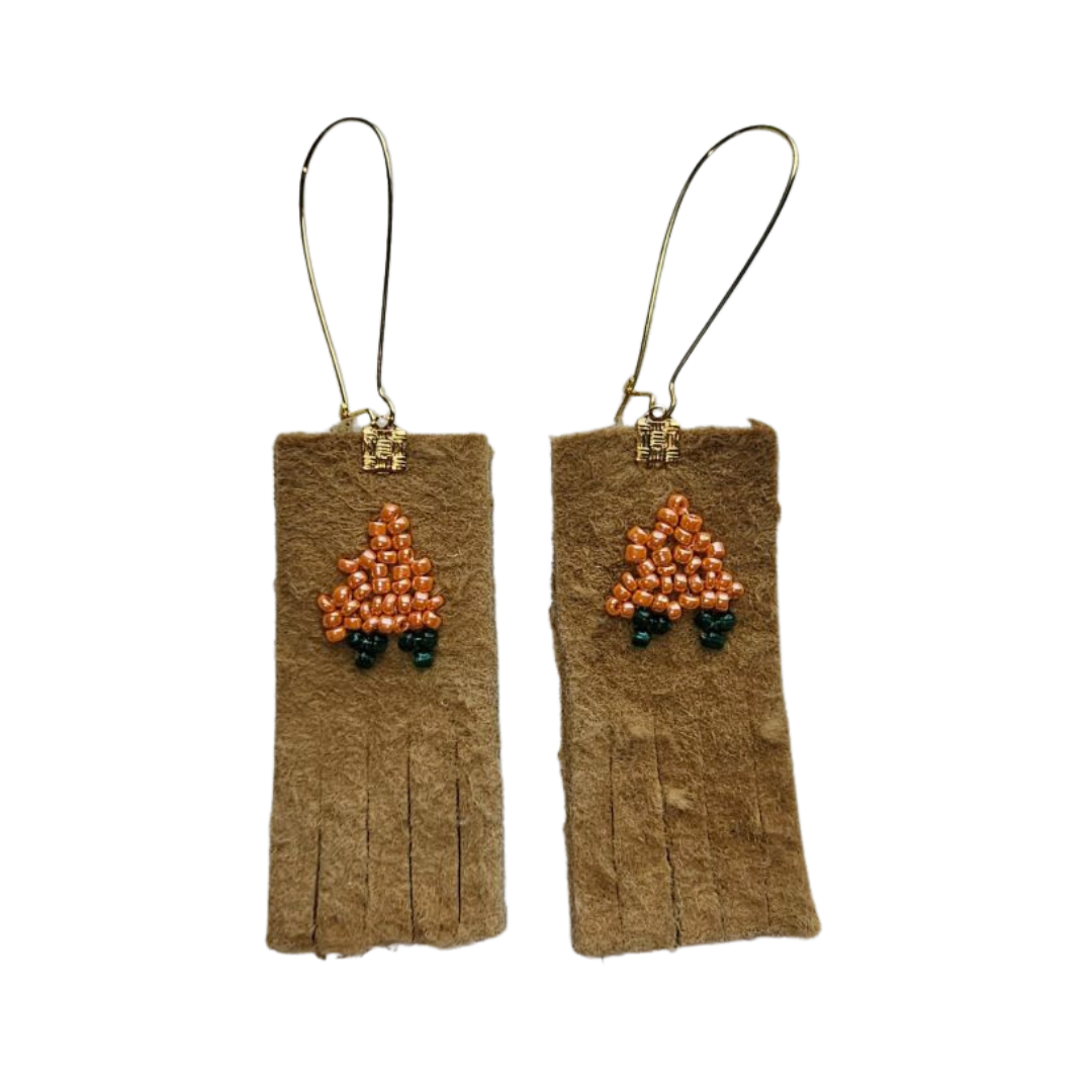 Introducing the Moosehide (Home Tanned) Fringe Beaded Akpiit, a stunning blend of natural beauty and creative craftsmanship. Handcrafted with care, it features home-tanned moosehide, delicate fringes, and intricate beadwork inspired by the vibrant Tundra Akpiit berries.