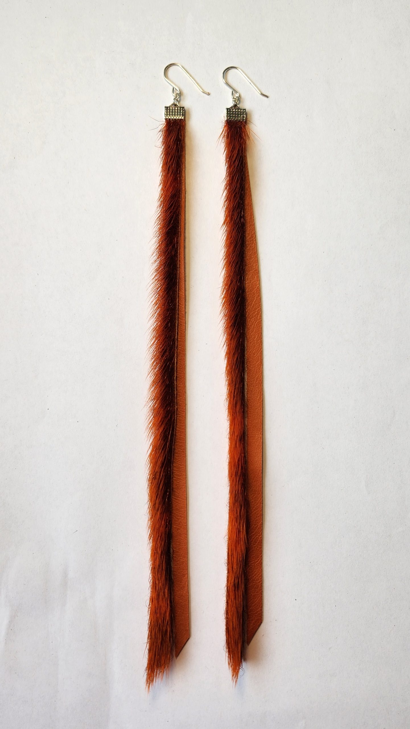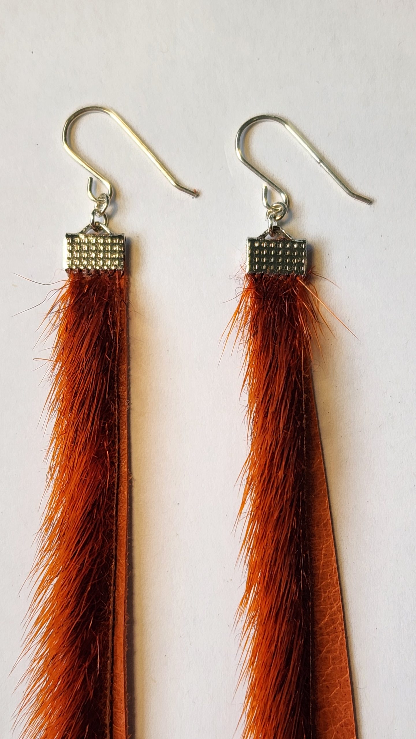 Découvrez ces superbes boucles d’oreilles pendantes en peau de phoque orange, un accessoire fascinant qui associe l’élégance de la peau de phoque et le raffinement du cuir d’agneau. Avec un coloris orange éclatant et des crochets en argent sterling, ces boucles d’oreilles sont conçues pour être un élément phare de vos tenues.
