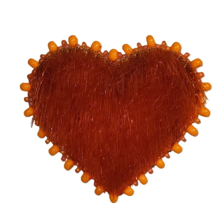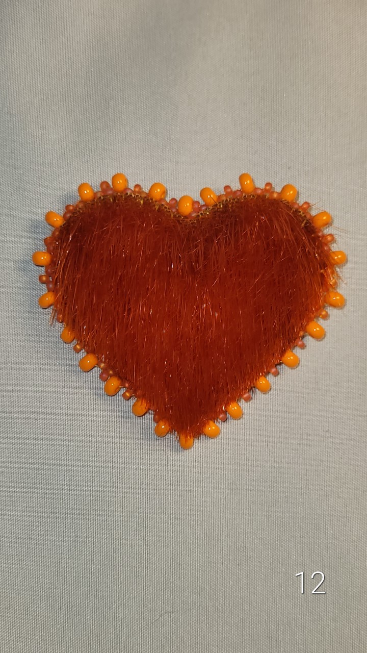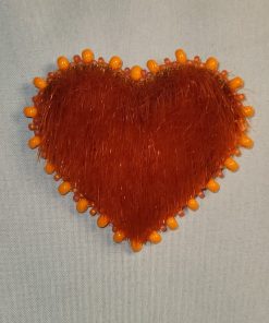 Orange avec perles décoratives. Veuillez contacter l’artiste si vous souhaitez une bordure d’une autre couleur.