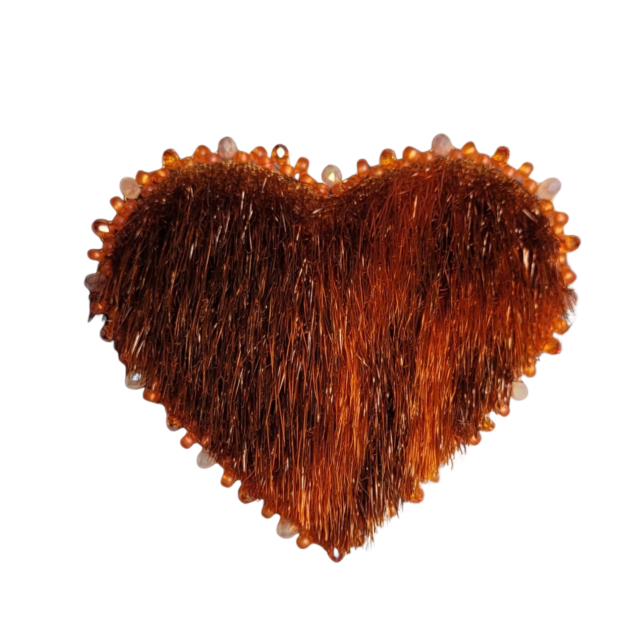 Orange avec perles décoratives. Veuillez contacter l’artiste si vous souhaitez une bordure d’une autre couleur.
