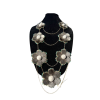 Médaillon en peau de phoque noir avec défenses en pierre de lune scintillante, avec de superbes poils de caribou. Représentant des défenses de morse couvertes de sang, symbole traditionnel de force et de férocité, ce bijou est une interprétation contemporaine de la tradition arctique occidentale.